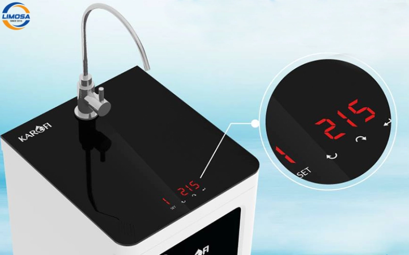 - Đếm ngược thời gian và lưu lượng: Hệ thống Karofi đếm ngược cả thời gian sử dụng và lưu lượng nước đã lọc qua từng lõi. Khi một trong hai chỉ số đạt ngưỡng tối đa, máy sẽ cảnh báo thay lõi bằng đèn báo hoặc thông báo trên màn hình.