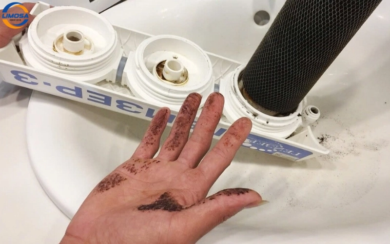 - Kiểm tra trực quan lõi thô: Lõi PP số một chuyển từ màu trắng sang màu nâu đỏ hoặc đen đậm là dấu hiệu rõ ràng nhất cần thay lõi ngay lập tức.
