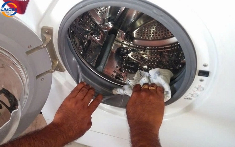 - Mở cửa máy giặt ra và kiểm tra kỹ lưỡng khu vực gioăng cao su và vị trí chốt khóa.