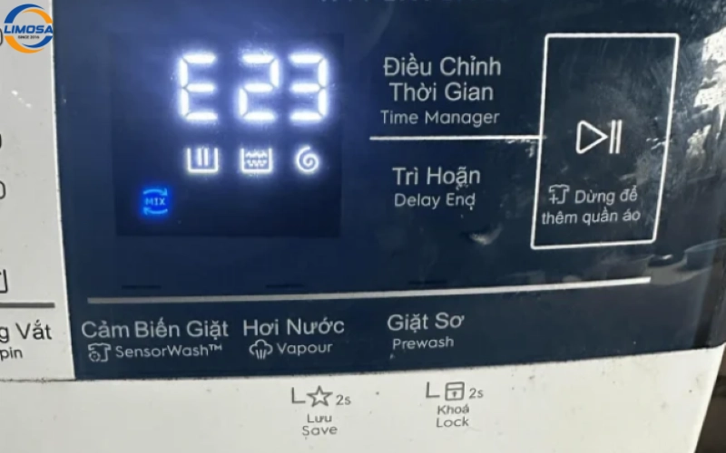 Mã lỗi máy giặt Electrolux E23 là sự cố nghiêm trọng liên quan đến hệ thống xả nước, thường xuất hiện khi máy đang xả hoặc chuẩn bị vắt. Khác với các lỗi E2x đơn giản như E20 hay E21 do tắc bơm, mã lỗi máy giặt Electrolux E23 thường liên quan đến bo mạch hoặc linh kiện điều khiển điện tử, khiến máy không xả nước và lồng giặt vẫn đầy. Bài viết này Điện Lạnh Limosa sẽ hướng dẫn bạn nhận biết dấu hiệu, kiểm tra cơ bản và xác định thời điểm cần hỗ trợ từ kỹ thuật viên chuyên nghiệp.