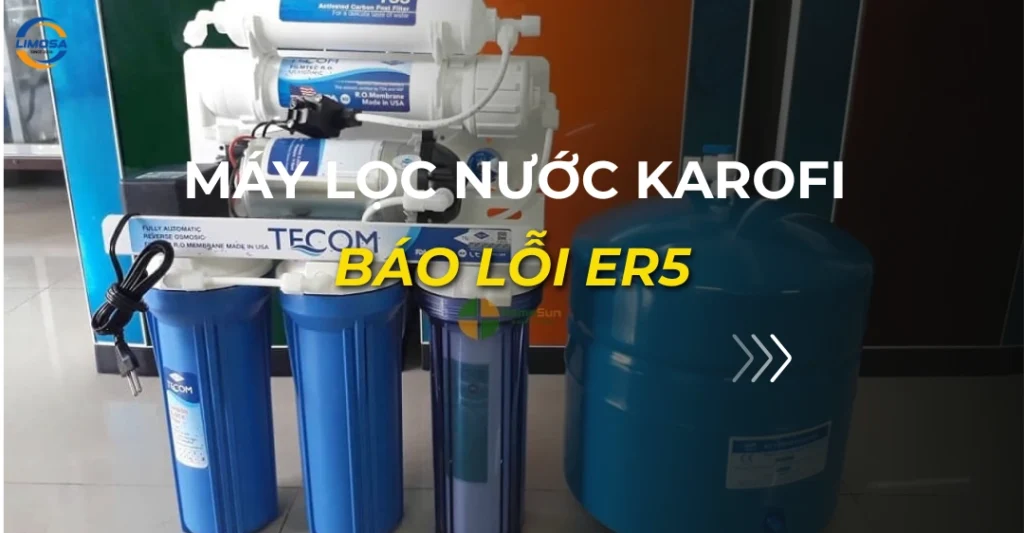 Máy lọc nước Karofi báo lỗi Er 5 có nghĩa là Cảm biến rò rỉ nước đã được kích hoạt. Lỗi này xuất hiện trên các dòng máy có trang bị tính năng bảo vệ rò rỉ và tự động ngắt nguồn điện.