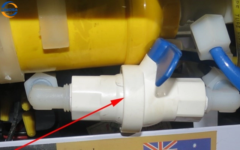 - Kiểm tra Van một chiều: Ngắt điện, khóa van cấp. Tháo dây dẫn nước sạch ngay sau màng RO. Nếu nước chảy ngược từ vị trí tháo, van một chiều đã hỏng và cần thay thế ngay. Thay van một chiều là một cách khắc phục nguyên nhân máy lọc nước không tự ngắt hiệu quả cho lỗi nhấp nhả.