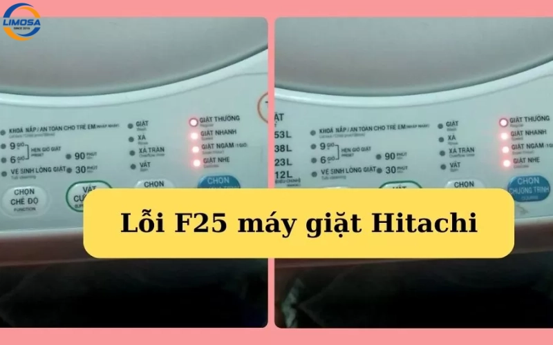 Sửa lỗi F25 máy giặt Hitachi là vấn đề thường gặp ở các dòng máy giặt tích hợp tính năng sấy. Mã lỗi này cảnh báo về sự cố nghiêm trọng trong hệ thống sấy khô hoặc lỗi quạt sấy, khiến quần áo không được sấy khô. Việc sửa lỗi F25 máy giặt Hitachi kịp thời rất quan trọng. Điện lạnh Limosa sẽ giúp bạn phân tích triệt để nguyên nhân cốt lõi và cung cấp giải pháp khắc phục sửa lỗi F25 máy giặt Hitachi chính xác, đảm bảo máy giặt của bạn hoạt động trở lại bình thường.